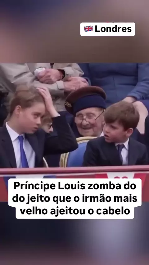 🇬🇧 O Príncipe Louis da Grã Bretanha, brincou com o jeito que seu irmão mais velho, George, mexeu no cabelo durante as comemorações do Dia da Vitória em Londres. O registro logo viralizou e vem arrancando risadas.