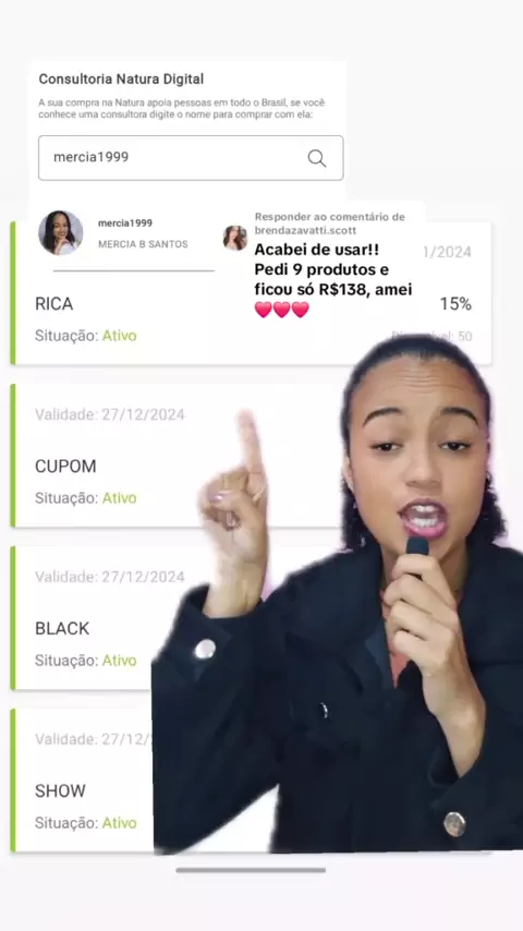 cupons ativos hoje na natura. Insira Mercia1999 como sua consultora e use os cupons: RICA, CUPOM, BLACK, SHOW, PROMO, BRINDE, MERCIAQUINZE, MERCIAPERFUMES, DESCONTO #cupomnatura #desconto #promoção #natura #blackfriday