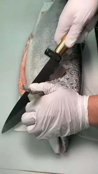 Why some salmon cuts make that satisfying crisp sound, while others don’t? #kitchenknives #cheflife #fyp #asmr