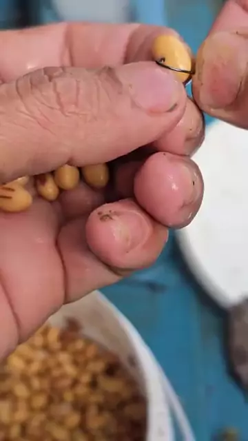 colocando soja no anzol