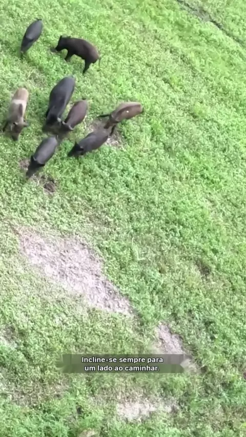 Pessoa caçando, olhando para o javali na árvore.