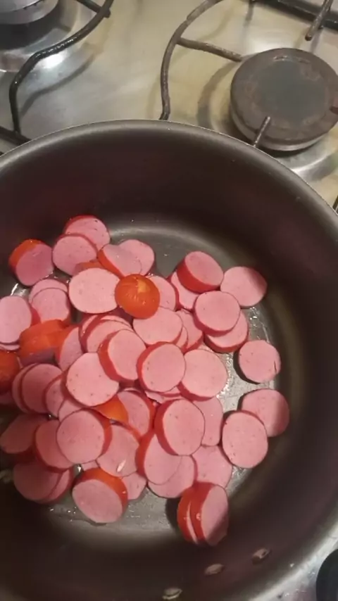 miojo com salsicha creme branco #cozinhando😋