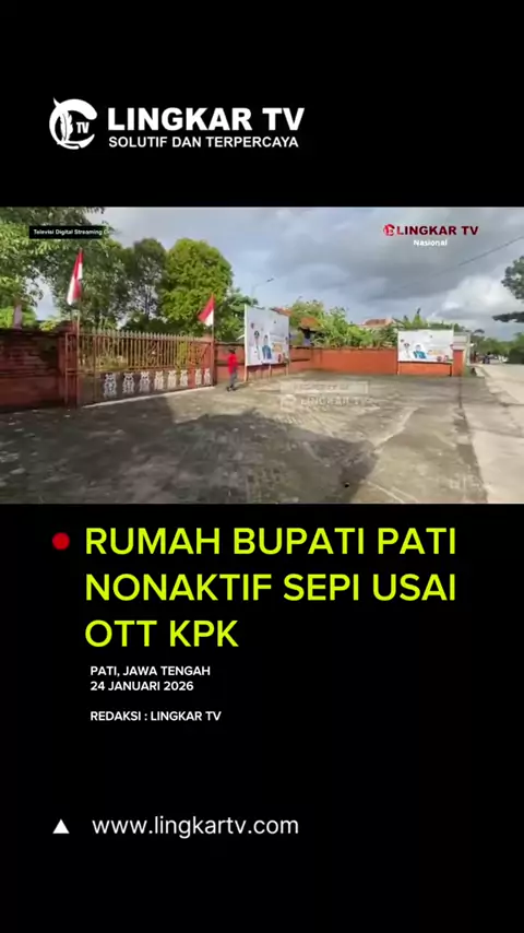 Rumah Bupati Pati Nonaktif Sepi Usai OTT KPK PATI – Suasana kediaman Bupati Pati nonaktif, Sudewo, yang berada di Desa Slungkep, Kecamatan Kayen, terpantau lengang pada Sabtu sore, 24 Januari 2026, pasca operasi tangkap tangan (OTT) yang dilakukan oleh Komisi Pemberantasan Korupsi (KPK). Berdasarkan pantauan di lokasi, tidak terlihat garis polisi maupun aktivitas aparat penegak hukum di sekitar rumah berarsitektur joglo tersebut. Kondisi rumah tampak tertutup dan tidak menunjukkan adanya kegiat...
