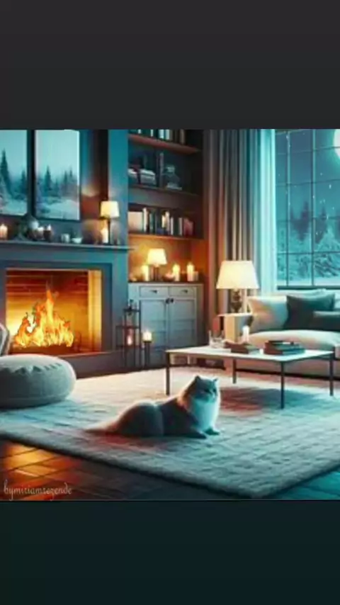 Sala bem confortável com lareira e muita neve lá fora. #sejacriador #viral #motivacional #Natureza #Chuva