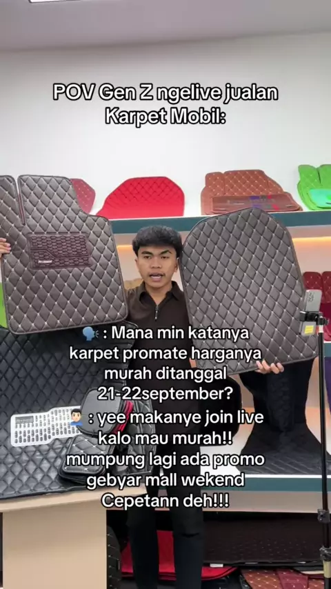 PROMO SPESIAL GEBYAR MALL WEKKEND PROMATE BANTING HARGA BESAR BESARAN, DISKON SAMPAI DENGAN 20%📢 JOIN LIVE SEKARANG‼️ #gebyarmallweekend #karpetmobil #karpetuniversal #karpetpromate #promateid #promate #Live