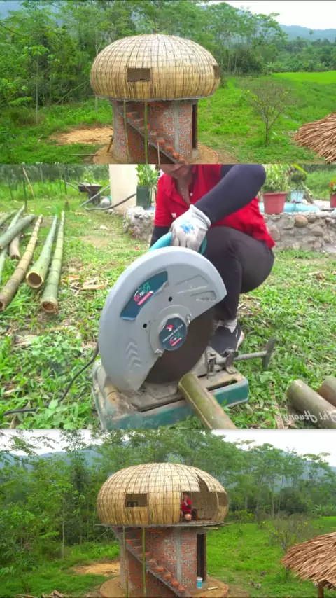 Episódio 115: 4 - Construa uma casa em forma de cogumelo - Faça um telhado de cogumelo com ferro e bambu - Construa uma cabana de madeira # bushcraft # logcabin # concrete # cabin # buildgril # bamboo # building # outdoors # buildhouse # shelter # シ # farmlife # survival # farm # build # camping # woodenfurniture #