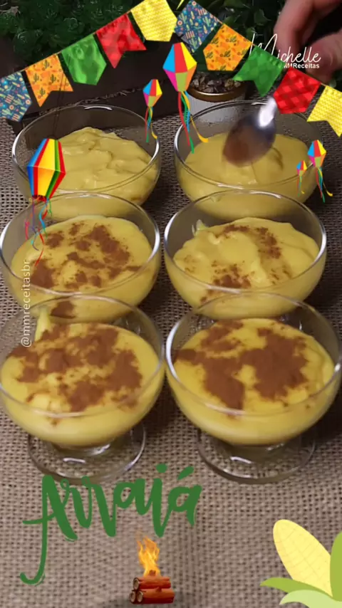 SEMANA DO ARRAIÁ 🌽 Curau de Milho de Latinha 🌽 Ingredientes: 2 latinhas de milho sem água 500 ml de leite 1/2 xícara de açúcar 1 pintadinha de sal 2 e 1/2 colheres (sopa) de amido de milho Canela a gosto