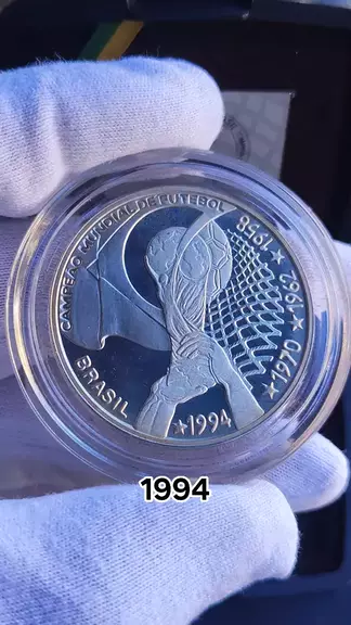 Copa do mundo 1994 Brasil Tetra Campeão do Mundo,Moeda de Prata 4 Reais #brasiltetracampeão #tetracampeão #brasil1994 #moedaprata1994 #numismatica