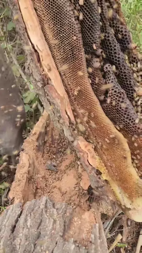 10 year old hive in a log!#beetok#bees#savethebees#bugs#nature#animals#wildlife#satisfying
