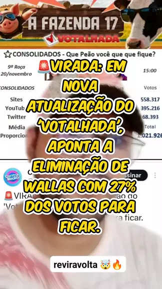 šØVIRADA: Em nova atualização do 'Votalhada', aponta a eliminação de Wallas com 27% dos votos para ficar. #AFazenda17 #ProvaDoFazendeiro #formaƧaodaroƧa #eliminaçãoafazenda #formaƧaodaroƧa