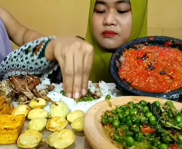 Makan ikan asin, karedok leunca, sambal bawang, lalapan jengkol muda (Yt:Ila Lhaila) #ilalhaila #menusundaan #bikinngiler #mukbangvideo #mukbangeatingshow