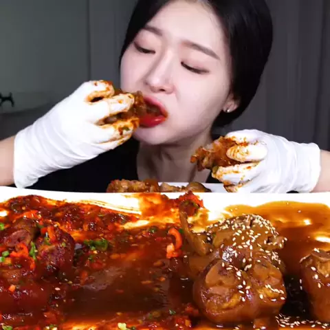 Mukbang Spicy braised pork trotters, soy sauce braised pork trotters and rice balls (Yt:Fume) #ASMRFOOD #mukbangkorea #fđąpp #mukbangvideo #snackvideo