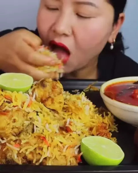 spicy chicken biryani [cr. dmaya mukbang]#mukbang#eating#biryani