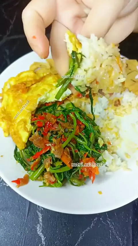 mari makan gaiiiiiiss 🤩 tumis sayur kangkung pedas+telur dadar dan peyeeeeeek kacang#makan#smr#mukbang#masakanrumahan