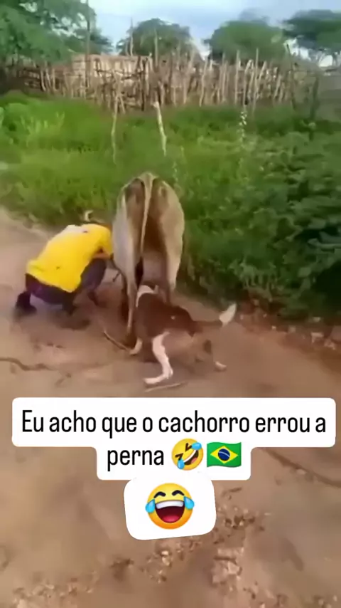 Esse cachorro foi morder a vaca, mas errou feio… acabou mordendo a perna do dono! 😂🐶 #CachorroDoido #FailAnimal #SóRindo #CenasEngraçadas #VidaNaRoça