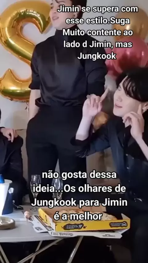 Jimin se supera com esse estilo.Suga muito contente ao lado de Jimin,mas Jungkook não gosta dessa ideia, mas o melhor é a cara do Jungkook #EstrelaDeFamílialevel1 #CrescerNaFamílialevel1 #SeteMaravilhaDoMundo