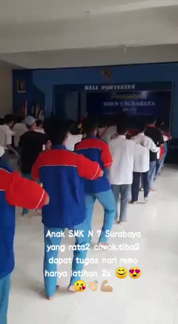 Tiba2 tiap kelas dipilih 5 anak buat nari remo.Dan latihannya hanya 2 x saja...πππππ SemangatπͺπΌπͺπΌ #SMK #tari #guru #murid #seru