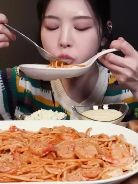Shrimp rose pasta MUKBANG #eatwithboki #mukbangasmr #SnackStyle #ASMRFOOD
