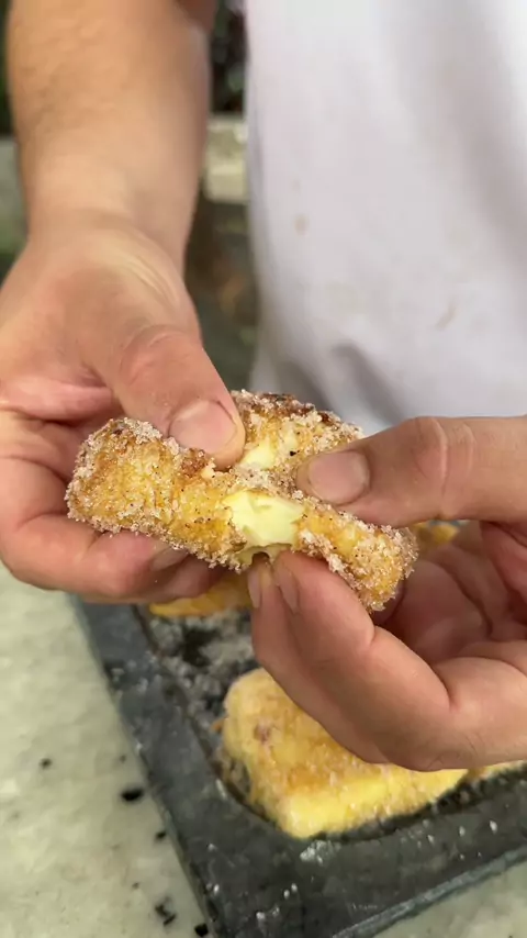 JÁ PENSOU EM FAZER LEITE FRITO? Nessa receita usei: 1 litro de leite Casca de 1 laranja Casca de 1 limão 1 rama de canela 5ml de extrato de baunilha 100g de amido de milho + 300ml de leite 3 gemas 120g de açúcar Forma usada: 24cm15cm Empanamento: Farinha de trigo e ovo batido Finalização: Açúcar com canela #fy #foryou #criadorkwai