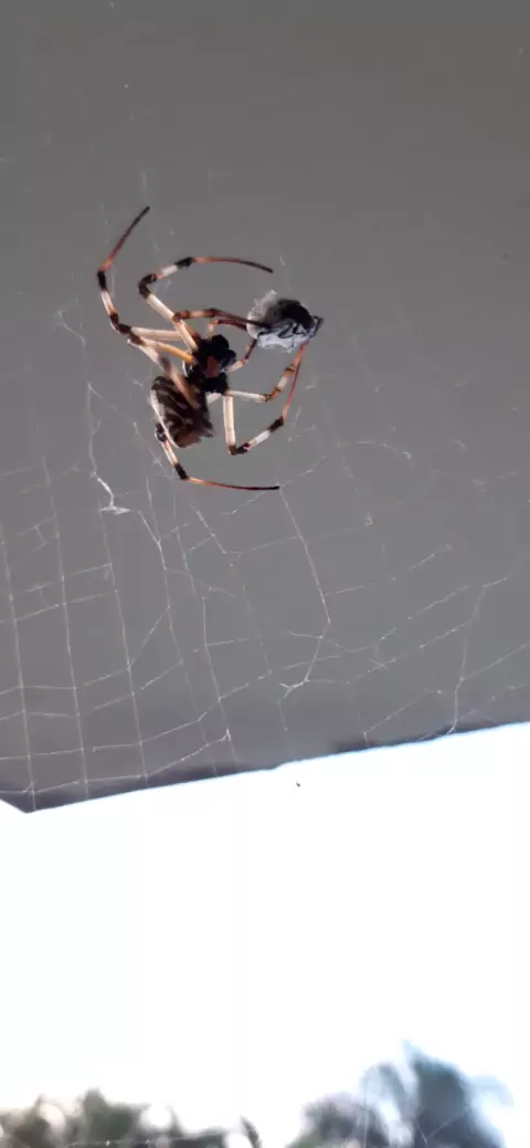 Aranha Maria Bola enrolando a presa #aranha #inseto #teia #mariabola