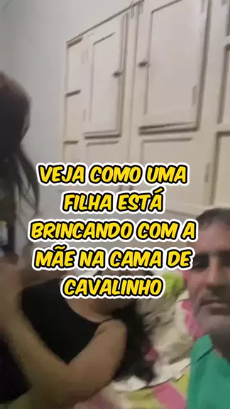veja como a filha está brincando com a mãe na cama de cavalinho.