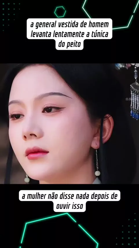 a general vestida de homem levanta lentamente a túnica do peito