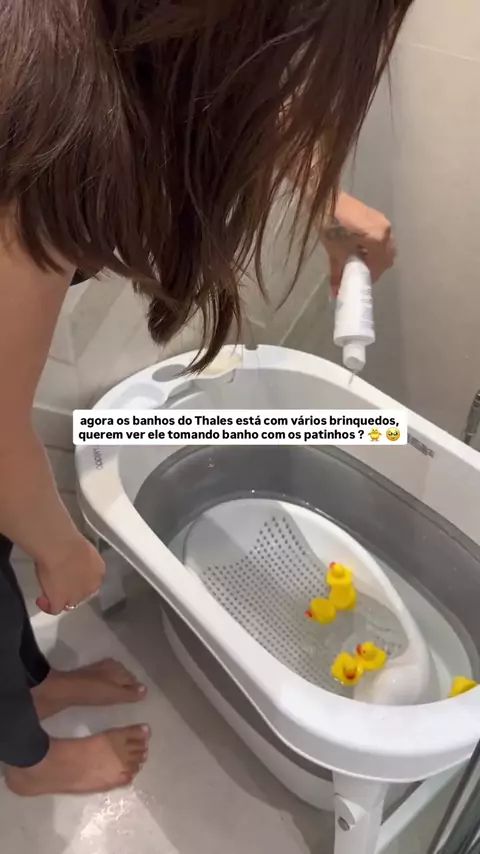 agora o banho do Thales está com vários brinquedos