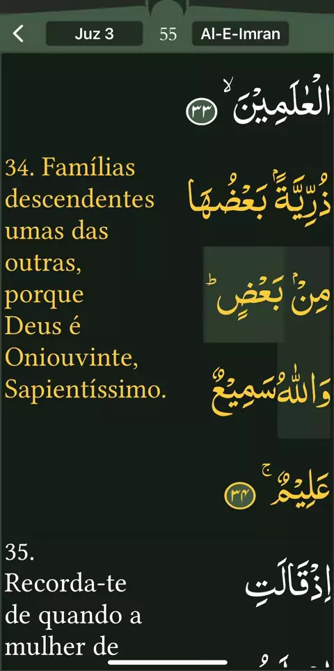 Read Qur’an everyday with naziaqaiser - Surah Al-E-Imran, verse , 34, - Portuguese language