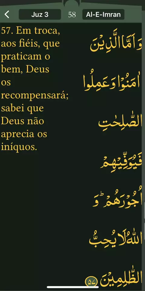 Read Qur’an everyday with naziaqaiser - Surah Al-E-Imran, verse , 57, - Portuguese language