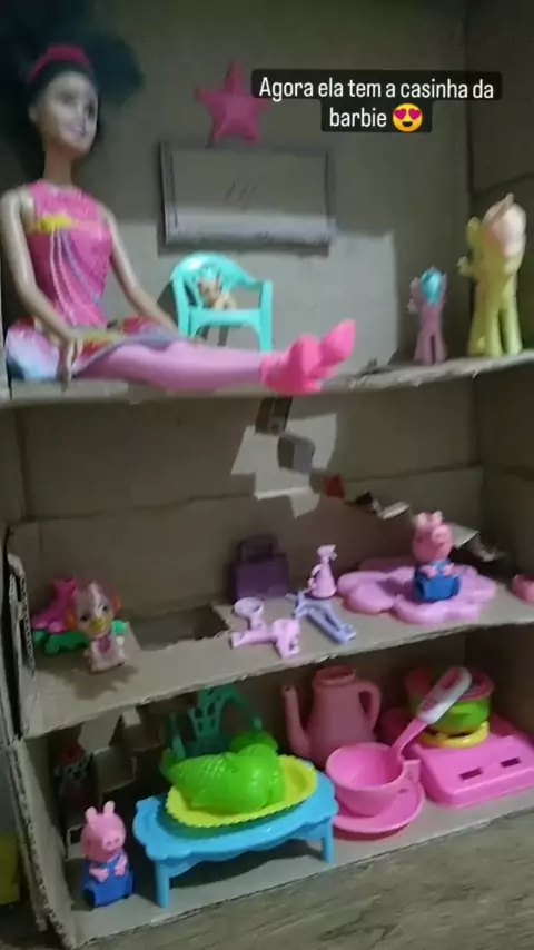 Papai fez a casinha da Barbie de papelão💗💗 #casinha #casinhadepapelão