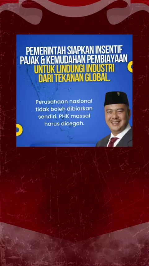 Pemerintah harus siapkan insentif pajak dan kemudahan pembiayaan untuk lindungi industri dalam negeri. Langkah konkret ini untuk cegah PHK massal dan menjaga stabilitas sektor padat karya #CegahPHK