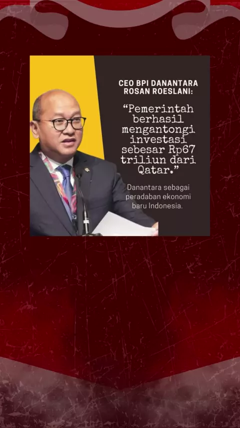 CEO BPI Danantara, Rosan Roeslani, berhasil amankan investasi Rp67 triliun dari Qatar #Danantara