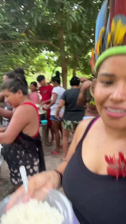 Bora se servir chambari pesado 🤤#diadia #almoço #Aldeia #kwaiviral