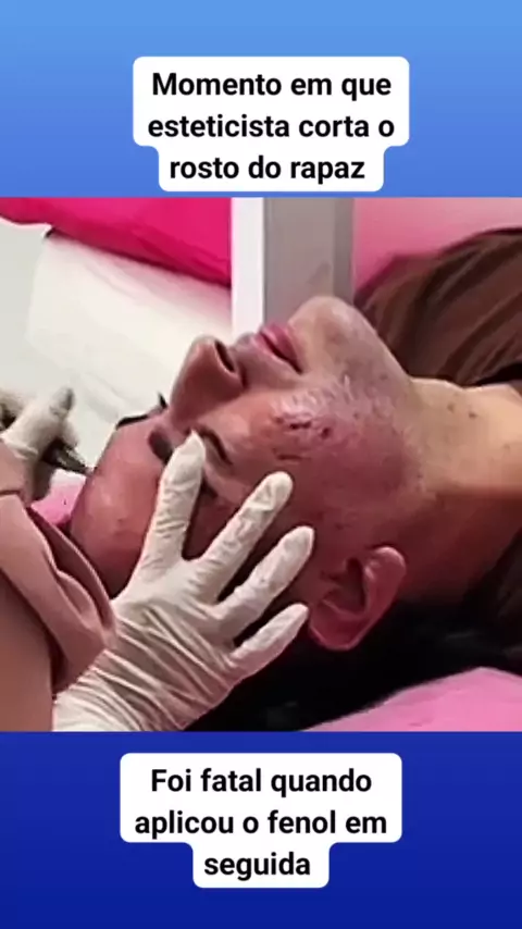Momento em que esteticista corta rosto do rapaz. #SãoJoãoTeleKwai #noticias #brasil #reinounido