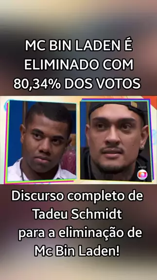 #mcbinladen é eliminado do #bbb24 com 80,34% dos votos! Veja na íntegra o discurso do #tadeuschmidt ! #kwainobbb #maisviews