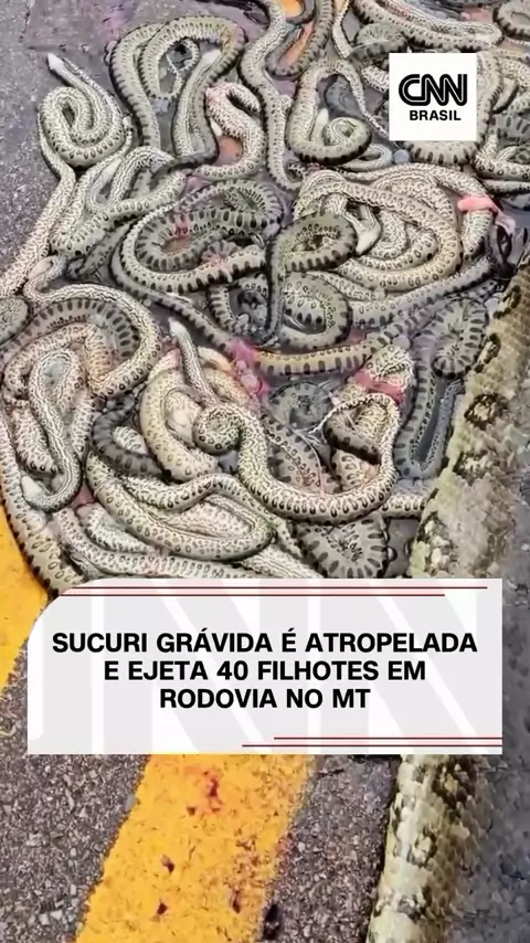 Já tinha visto? Sucuri grávida é atropelada e ejeta 40 filhotes em rodovia no Mato Grosso! #cobrasucuri #sucuri #maisviews #viraliza #CNNBRASIL