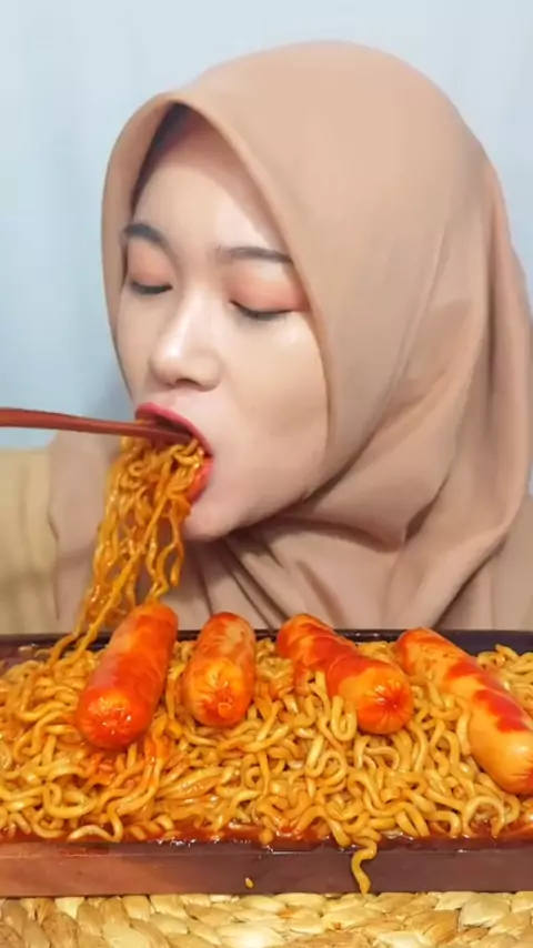 mukbang mie pedas korea merah merona double pedasnya bikin bibir bergetarrr #mukbangindonesia #ghocujang #miesamyang #pedas #fyp