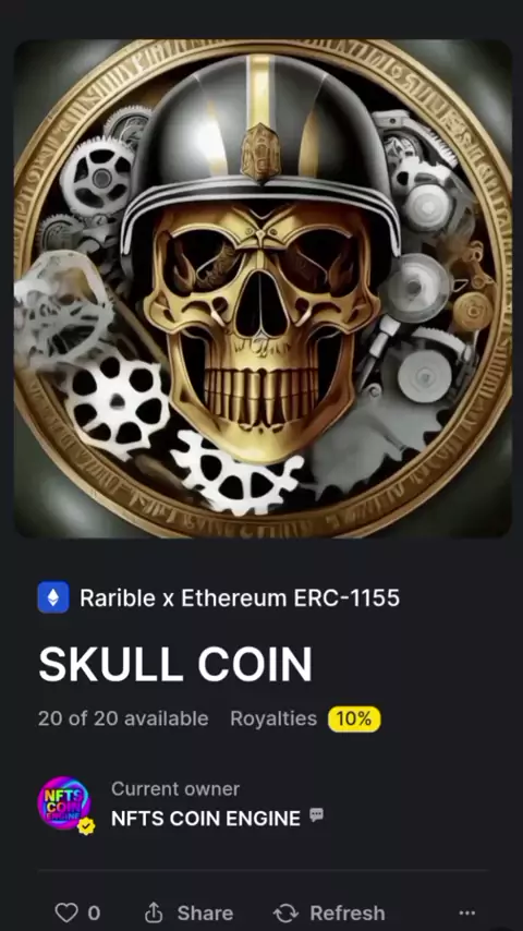 🌐 NFT em destaque: [SKULL COIN] 🎨 Criação original com movimento, feita no coração da blockchain! 🚀 Disponível agora na @rarible 🔗 Link na bio https://rarible.com/nftscoinengine #NFT #NFTart #CryptoArt #DigitalArtist #RaribleNFT