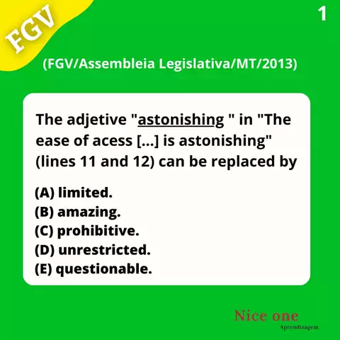" Flashcards " em inglês para banca FGV. Estudando para concursos públicos? Aqui você encontra um conteúdo para acelerar sua aprovação, além de ser de rápida revisão e memorização. Através desses" flashcards ", você terá domínio do padrão das provas da banca FGV. Descobrirá como o examinador realmente pensa. Dica: Primeiro tente resolver sozinho a questão, depois veja a resposta.