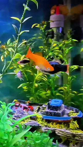 Meu Aquário comunitário de 34 litros com Peixe espada, molinesia, Plati e Ampularia #Aquário #fishtank #aquarismo #peixe #fish