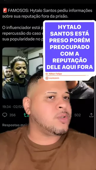 HYTALO SANTOS ESTÁ PRESO PORÉM PREOCUPADO COM A REPUTAÇÃO DELE AQUI FORA