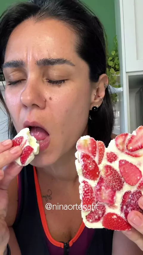 ✨ Barra de chocolate branco com apenas 2 ingredientes! ✨ Ah, se você gosta de receitas fáceis e práticas como essa, eu separei 40 receitas incríveis no meu e-book — o link está na bio, é só clicar pra baixar 💛 🍫 Receita: • 4 colheres de sopa de leite em pó desnatado (aprox. 40g) • Água até dar ponto de caldinha • Frutinhas a gosto — eu usei 100g de morango 🍓 👉 Macros (por porção): • 180 kcal • 15g de proteína • 18g de carboidratos • 4g de gordura Uma sobremesa leve, proteica e per
