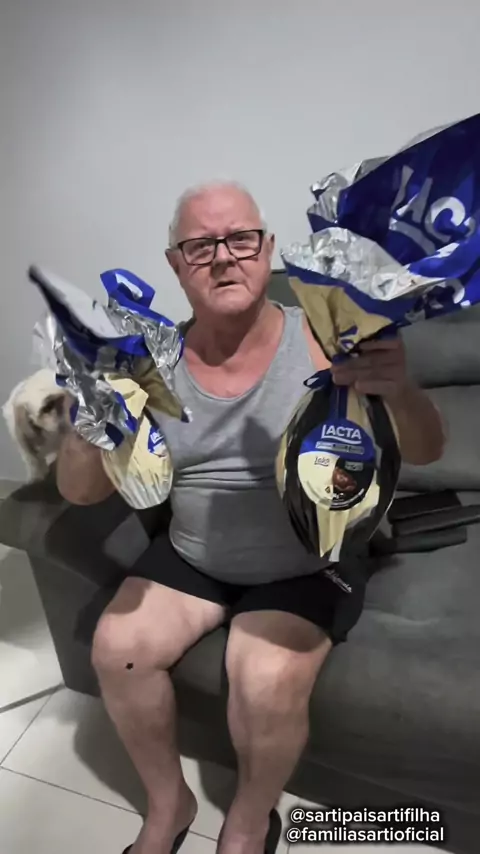Dei um ovo de Páscoa pequeno para o meu Pai e um grande para o meu esposo