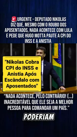 Deputado Nikolas diz que, mesmo com o roubo dos aposentados, nada acontece com Lula e pede que Hugo Motta paute a CPI do INSS e a anistia #noticias #nikolasferreira #cpi #inss #Anistia.Fonte:TV Câmara