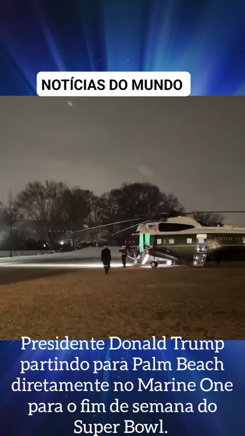 Presidente Donald Trump partindo para Palm Beach diretamente no Marine One para o fim de semana do Super Bowl. #noticias #guerra