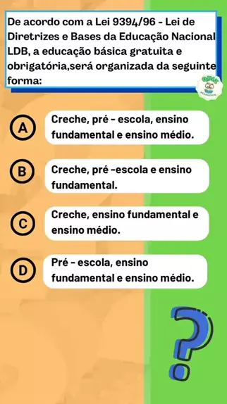 Quiz Pedagógico sobre a LDB ( Leia de Diretrizes e Bases da Educação Nacional). Para realizar o teste completo é só ir no nosso canal no YouTube QUIZ PEDAGOGIA. . #pedagogia #professora #educação #ldb2022 #ensinofundamental