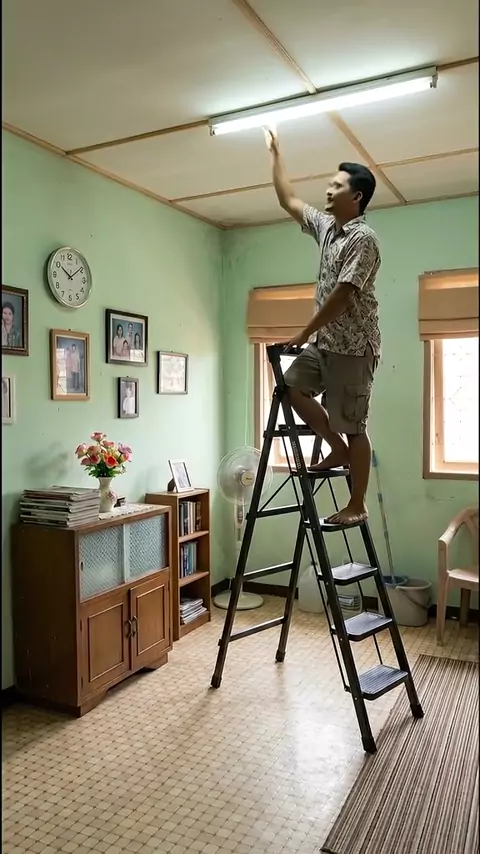 caption: Tangga lipat multifungsi yang praktis untuk kebutuhan rumah seperti ganti lampu, bersih-bersih, dan ambil barang di tempat tinggi tanpa ribet. hashtags: #tanggalipat #tanggamultifungsi #peralatanrumah #alatrumah #rumahrapi #kebutuhanrumah #inspirasirumah #perlengkapanrumah