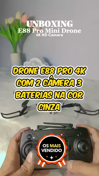 Drone E88 Pro 4K Com 2 Câmera 3 baterias na cor cinza #drone #kwaishop