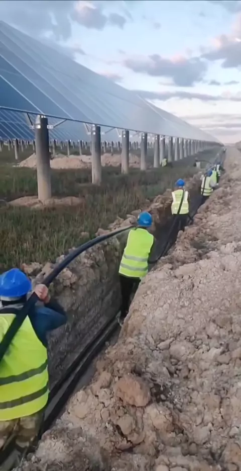 Photovoltaic cable laying, cable conveyor helps a lot, quickly pulling the cable, we can also use photosynthesis to generate electricity on the roof, isn’t it great #cablepulling #cablelaying