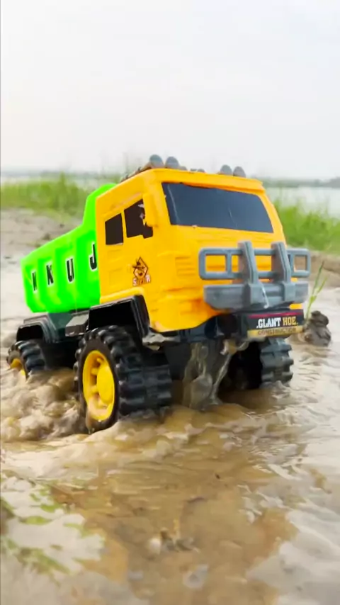 O desafio de um pequeno carro de brinquedo atravessando a poça 2